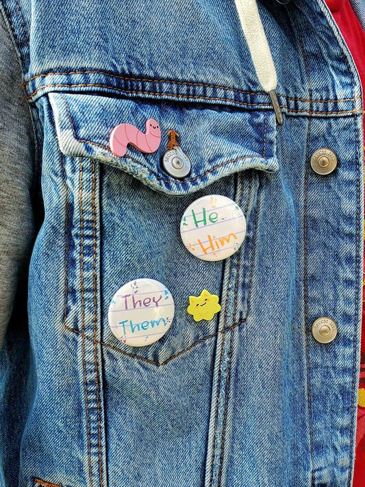 Crayon Pronoun 1.5" Sparkle Pinback Button