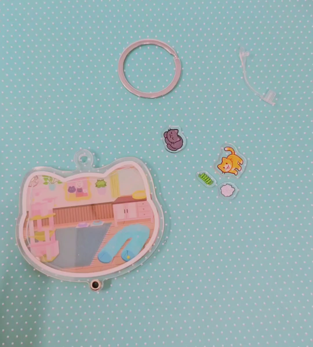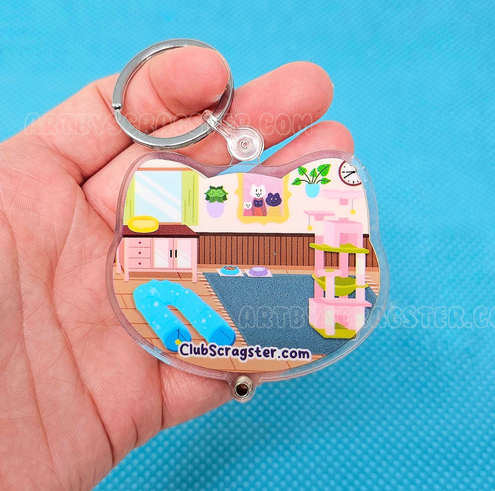 A 3" customizable shaker keychain! Now you can take your kitties with you anywhere you go :3 This keychain is double sided and features a shaker window for swappable minis